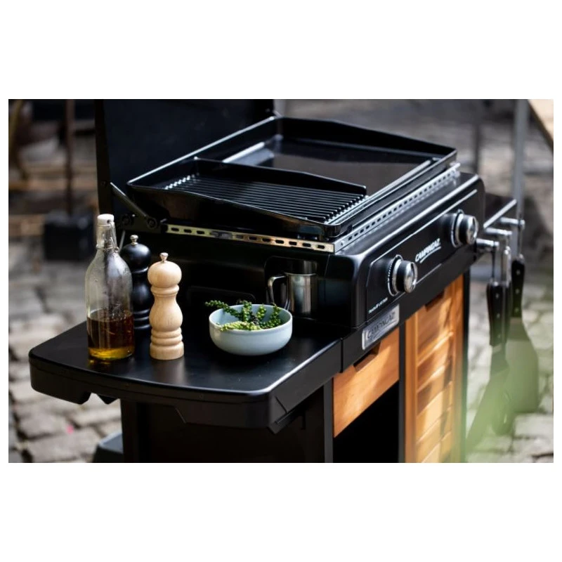 Plancha à gaz Blue Flame LXD Twin de CAMPINGAZ avec plaque en fonte émaillée deux zones pour une cuisson simultanée de plusieurs aliments, pour les longs séjour au camping en camping-car ou caravane, et la maison bien-sûr !