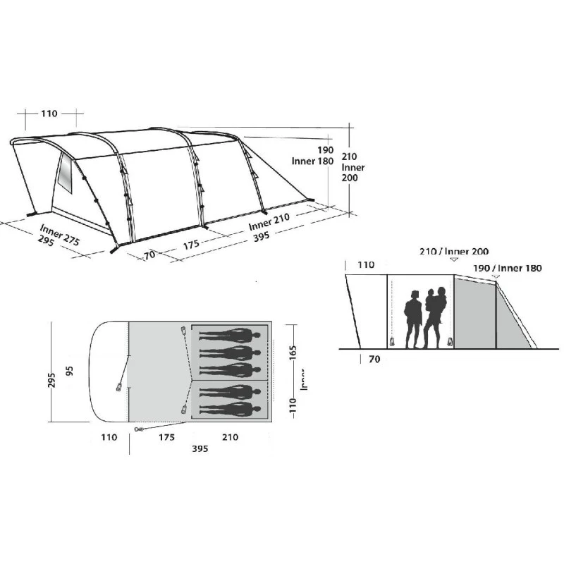 - A deux adultes en couple ou avec un ou trois enfants, vous disposerez de toute la place nécessaire pour établir un campement confortable.