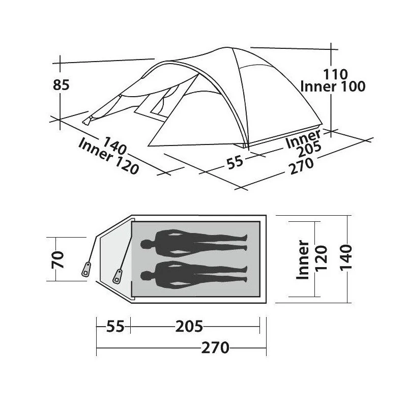 Caractéristiques techniques de la toile de tente dôme double EASY CAMP Quasar 200 :