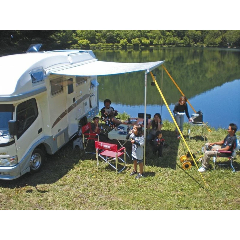 Accessoire indispensable pour une bonne utilisation de votre store extérieur pour camping-car et fourgon aménagé la sangle de tension et de maintien au sol HABA TentSafe permet d’empêcher le store de s’envoler avec le vent en le fixant fermement au sol sans forcer sur la structure et les bras de store grâce au ressort fournie avec ce kit de maintien.