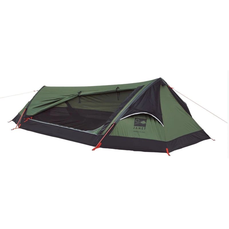 Tente profilée de randonnée pour 2 personnes conçue pour la haute montagne et les raids avec 1 entrée double porte moustiquaire.