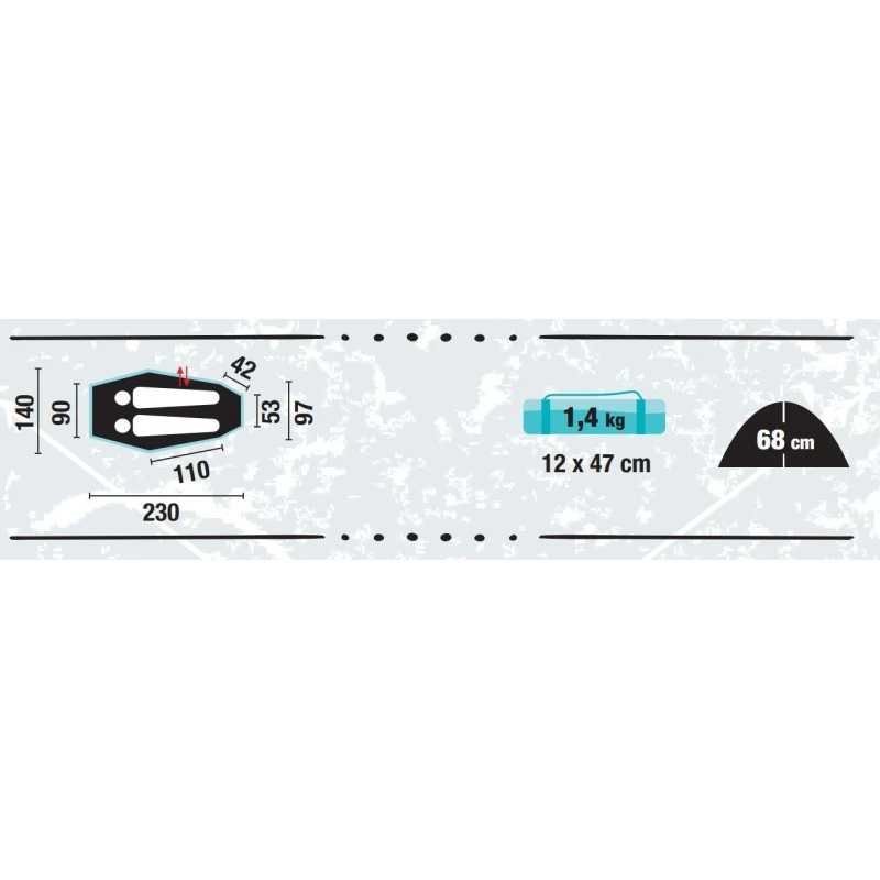 Cette tente profilée conçue pour la randonnée et l’excursion en haute montagne, cette tente ultra légère possède 2 arceaux, celle-ci sera donc idéal pour la glisser dans votre sac à dos. Tente profilée pour une meilleure tenu au vent, elle ne pèse que 1,4 kg. Imperméable, elle peut supporter des conditions extrêmes.