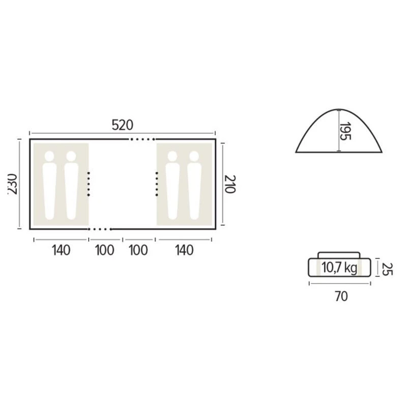 Un bel espace de vie vous attend sous cette toile de tente JAMET Ottawa, cette tente conçue pour 4 personnes possède une belle hauteur de 1,95 m pour vous déplacer dans la partie séjour facilement et vous y abriter par mauvais temps. Confortable et bien agencée, elle dispose de portes latérales pour entrer et sortir facilement de votre tente.