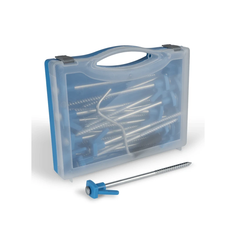 Equipement outdoor pour campeurs et caravaniers, ce lot de 20 piquets acier est idéal pour pouvoir planter sans effort et tendre les cordes de votre tente ou encore votre auvent.