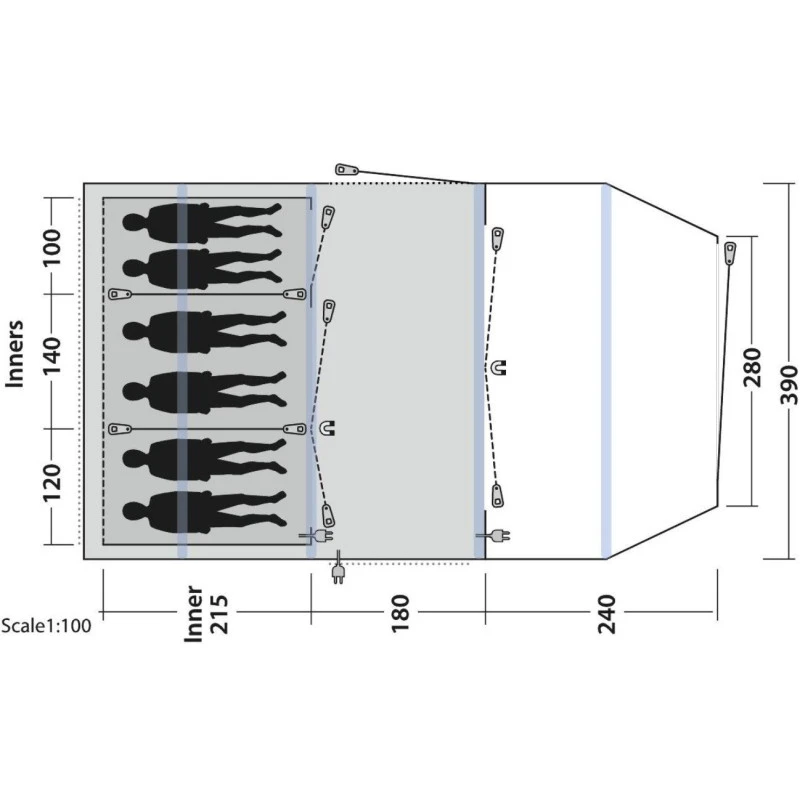 Caractéristiques techniques de la toile de tente gonflable OUTWELL Parkdale 6PA :