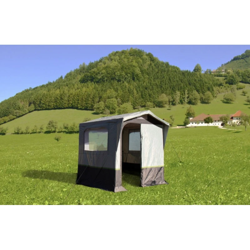 La tente Alicante de chez REIMO est un abri de rangement en toile vous permettant de cuisiner à l’abri ou bien de stocker votre matériel de camping. Le modèle Alicante dispose d’une porte et de fenêtres pour faciliter l’accès et votre confort.